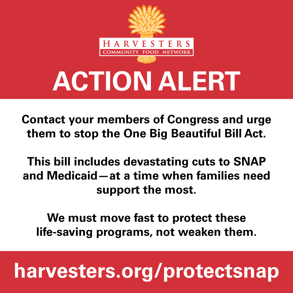 In addition to giving your voice, you can help by giving food, time, or money to Harvesters or any of our Agency Partners. We must work together to do all we can and continue to provide consistent access to nutritious food for anyone who needs it.